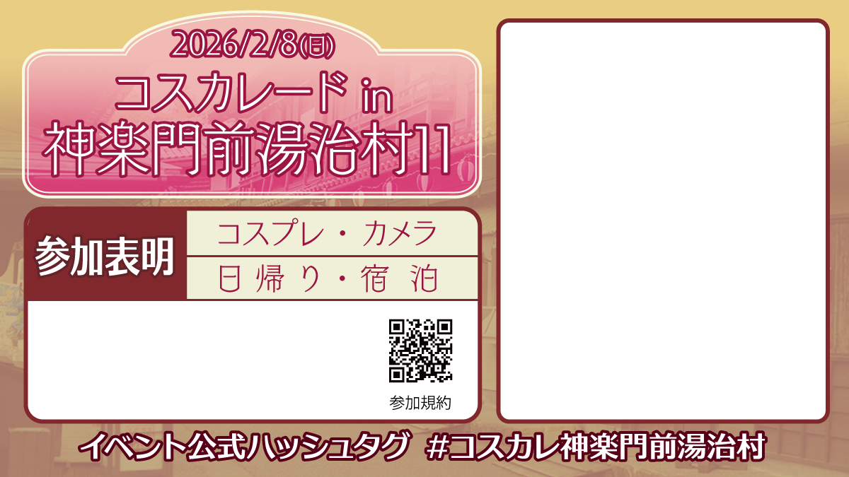 ハッシュタグ → #コスカレ神楽門前湯治村