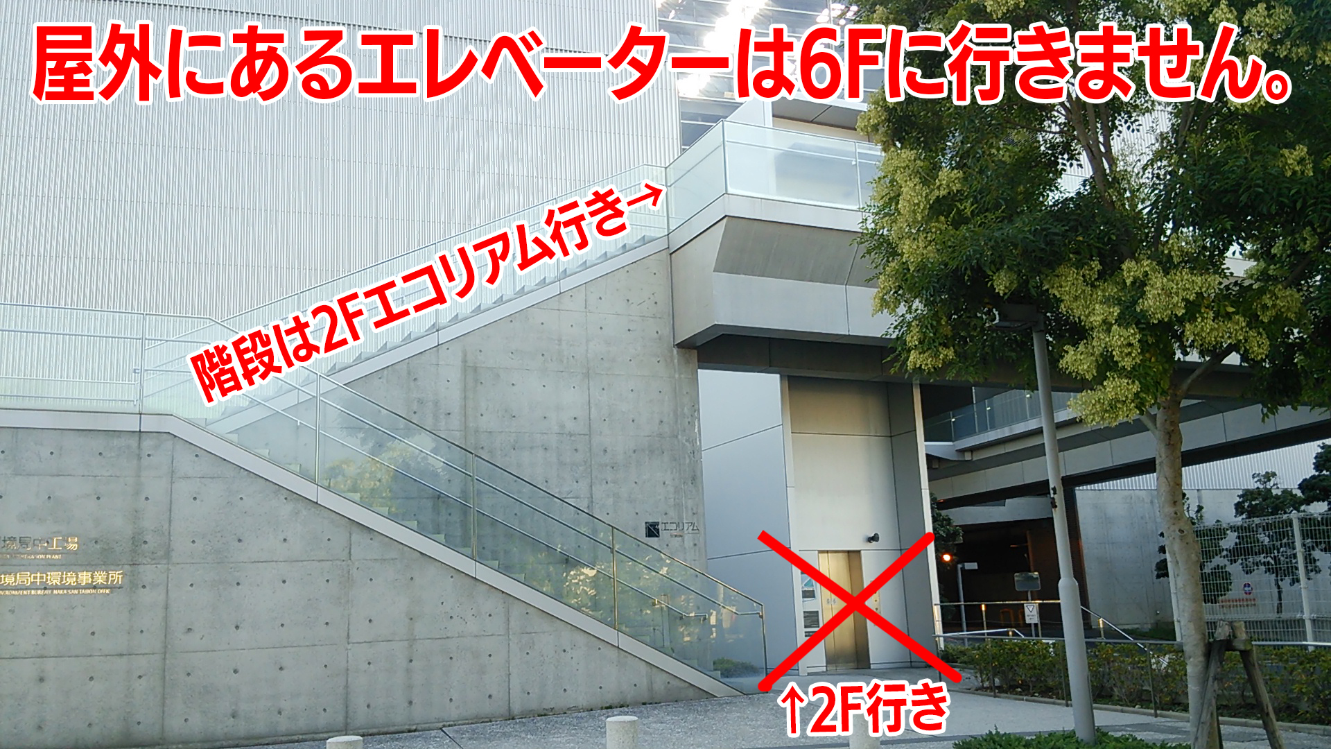 【ご注意】この屋外にあるエレベーターは6Fに行きませんのでご注意ください。